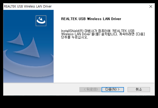 Realtek Wireless LAN Software 설치 화면이 열리면 안내대로 설치를 진행하면 됩니다.