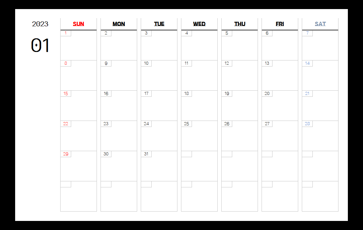 2023년 엑셀 달력