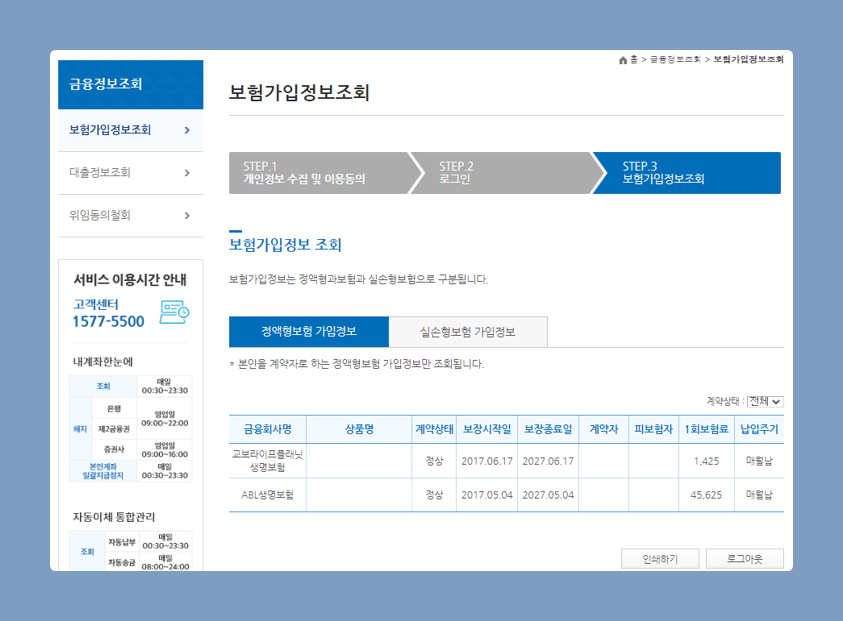 내 보험 한눈에 서비스 - 나의 보험가입현황